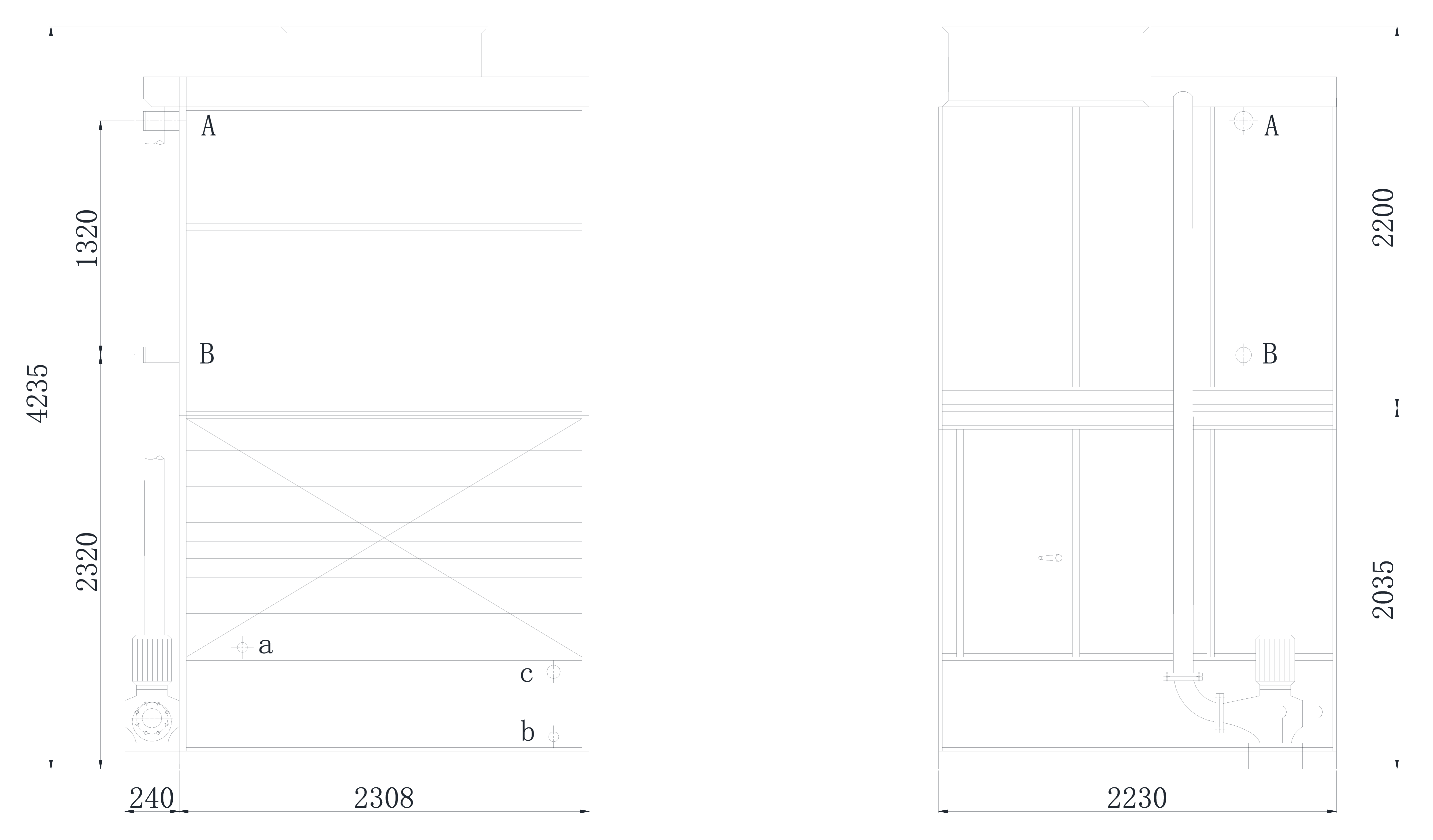 WXRD/B Series Evaporative Condenser uses water and air as cooling medium. The cooling medium exchanges the heat with high-heat gaseous refrigerant medium and hence the refrigerant medium becomes liquid. Inside, there are water dispatching system, condensing coils/plates, wet padding heat exchange layer and dehydrator and so on. Outside, there are water circulating pump and propeller fans on the top of condensing coil/plate. The propeller fan strengthens the flow of the air and causes negative pressure inside. When the condenser works, the cooling water is sprayed from water dispatching system to the surface of condensing coils/plate equably to form a thin layer of water film. The high-heat steam of refrigerant medium enters from the top of condensing coil/plate and then the cooled liquid refrigerant medium is discharged from the bottom of the condensing coil/plate. During this process, high-heat refrigerant medium exchanges the heat with the water and air outside the coil/plate and increases the efficiency of medium exchange with the help of wind..